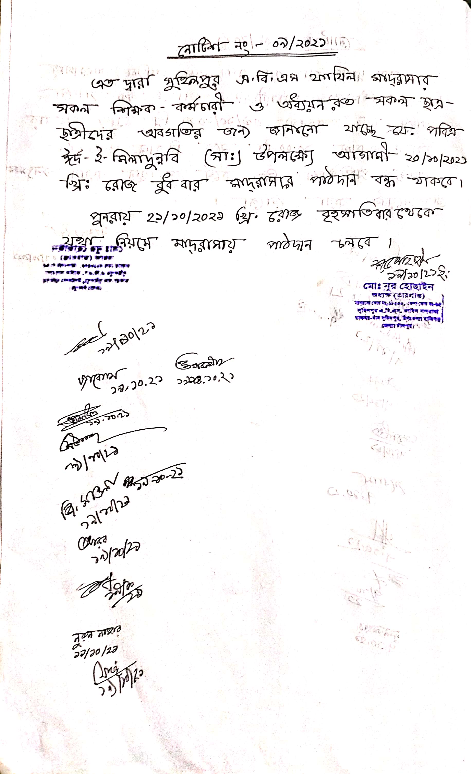 ঈদে মিলাদুন্নবী উপলক্ষে মাদ্রাসা বন্ধ সংক্রান্ত নোটিশ।