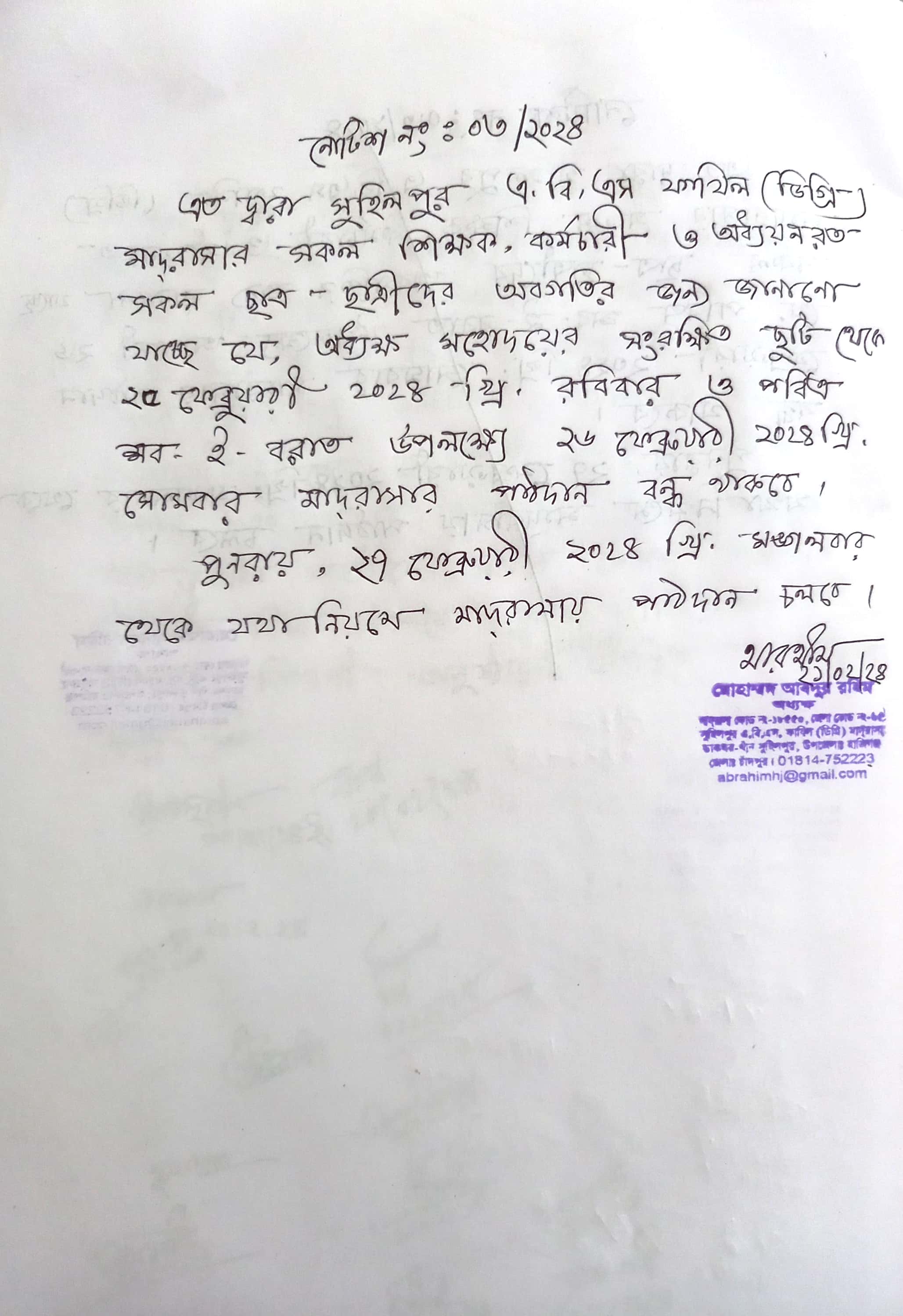 শবে বরাত উপলক্ষে মাদ্রাসা বন্ধ