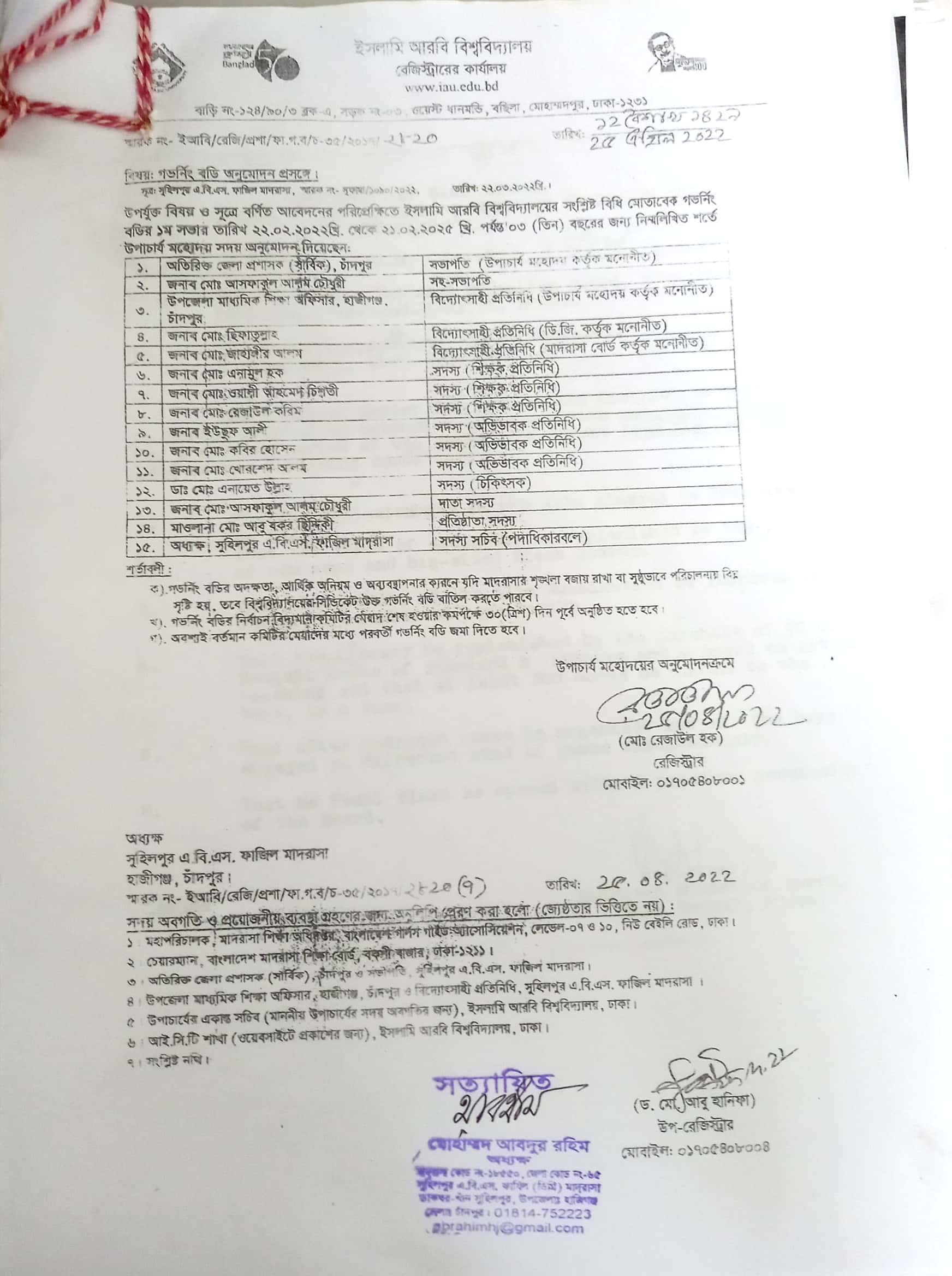 গভর্নিং বডি সদস্যদের তালিকা